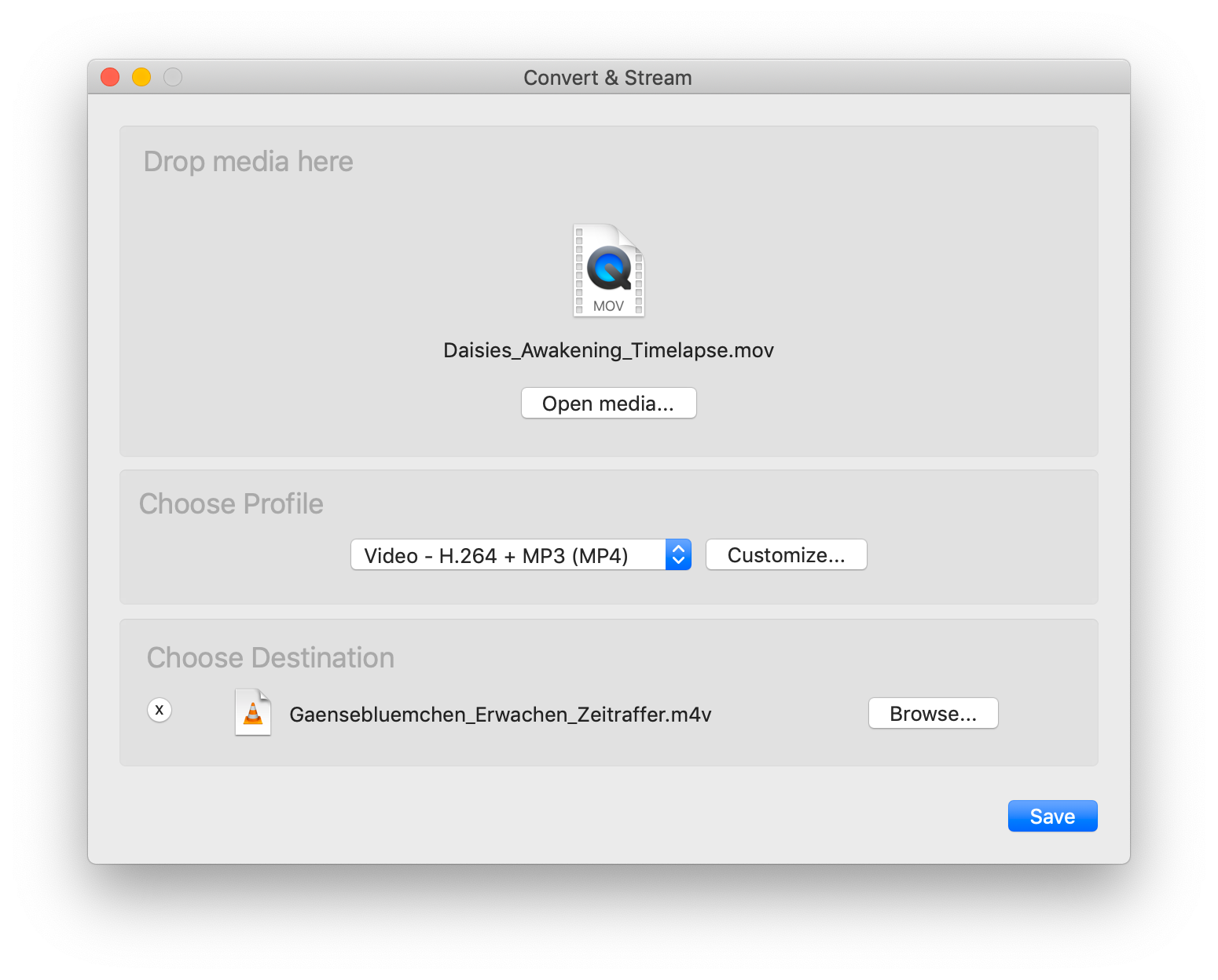 12. VLC Dialog Konvertieren & Streamen - Verzeichnis und Datei-Namen via Browse festlegen